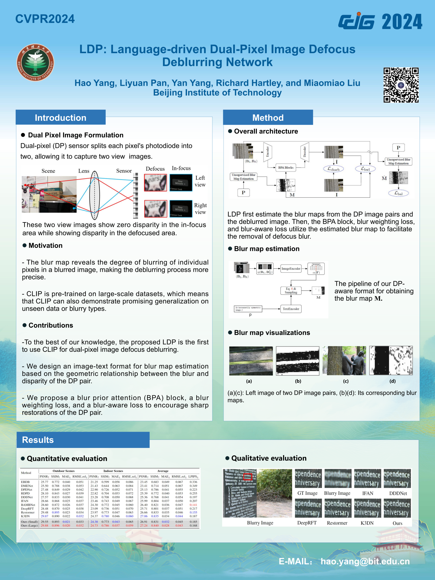 | P100 | LDP: Language-driven Dual-Pixel Image Defocus Deblurring Network | 杨浩、潘利源、杨焱、Richard Hartley、Miaomiao Liu | CVPR | 查看 |