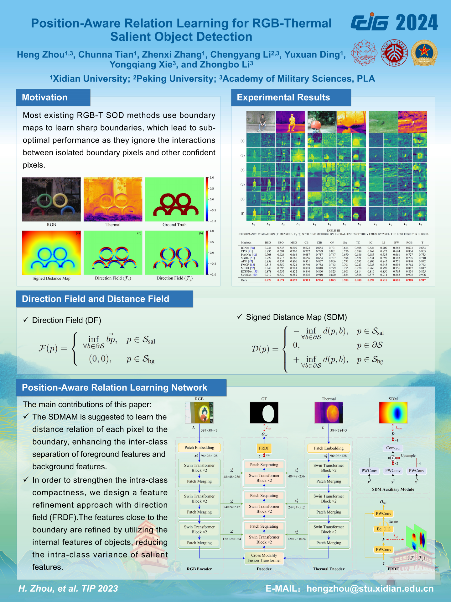 | P012 | Position-Aware Relation Learning for RGB-Thermal Salient Object Detection | 周恒、田春娜、张振熙、李承阳、丁宇轩、谢永强、李忠博 | IEEE TIP | 查看 |