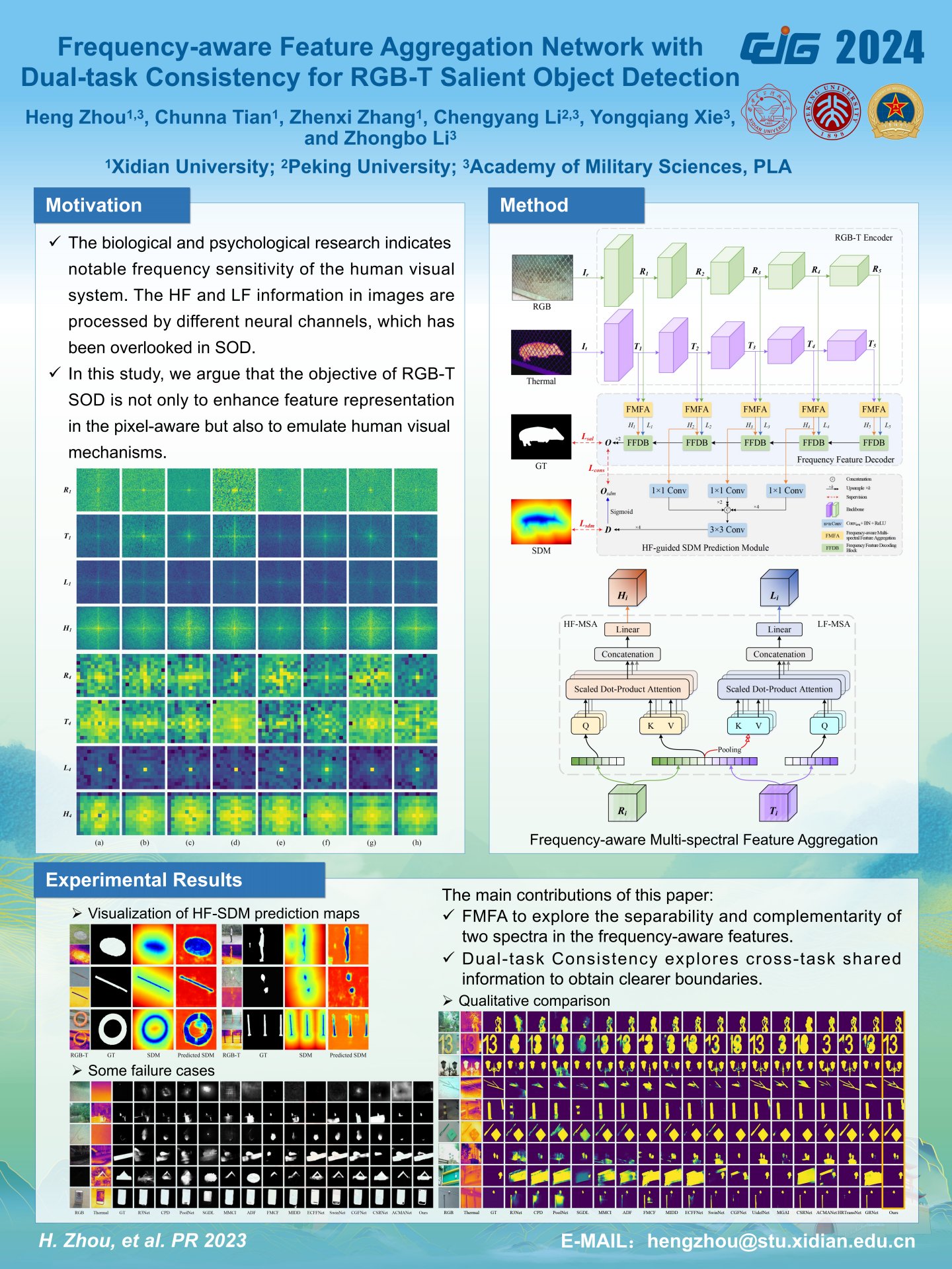 | P013 | Frequency-aware feature aggregation network with dual-task consistency for RGB-T salient object detection | 周恒、田春娜、张振熙、李承阳、谢永强、李忠博 | Pattern Recognition | 查看 |