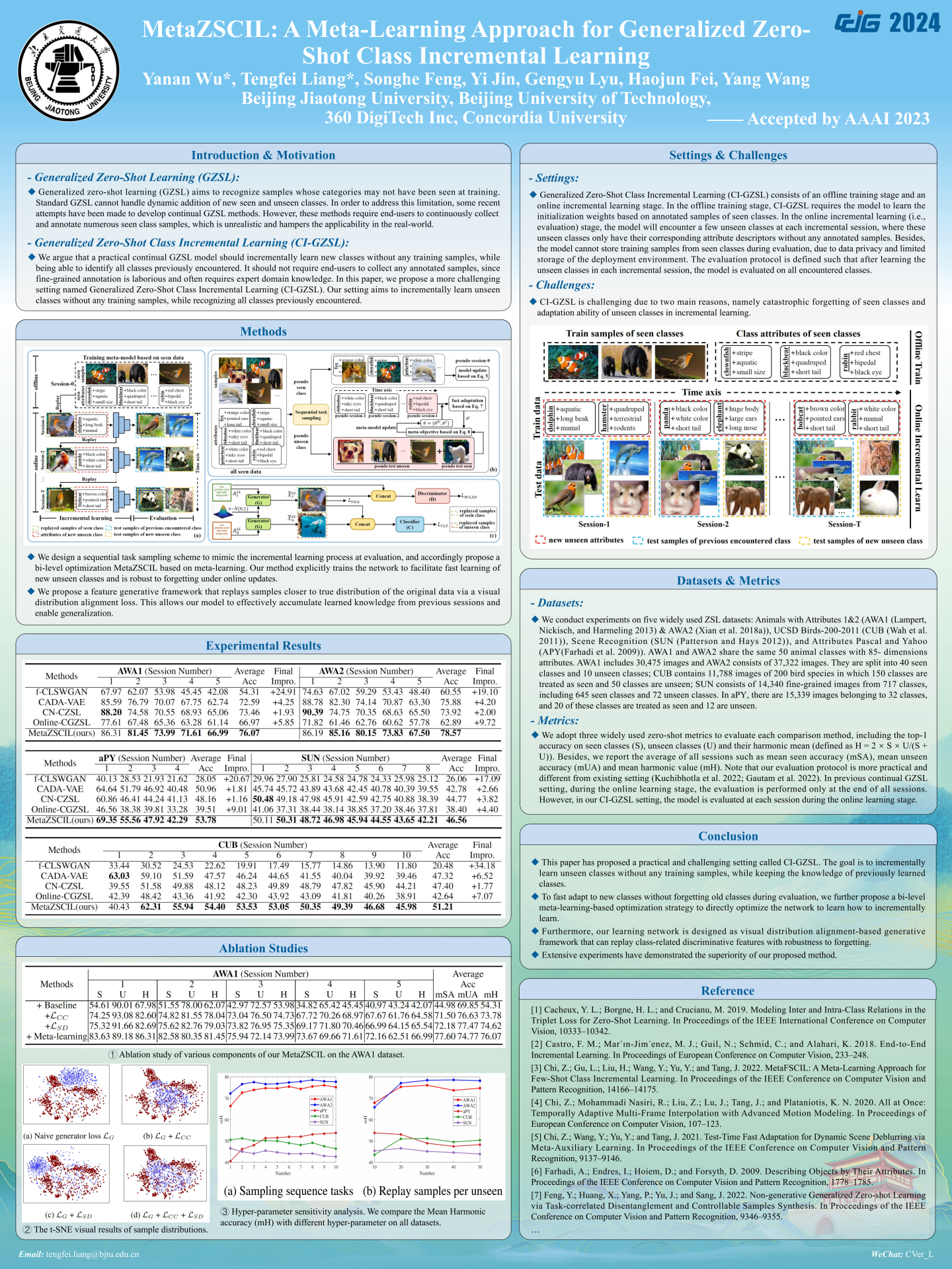 | P017 | MetaZSCIL: A Meta-Learning Approach for Generalized Zero-Shot Class Incremental Learning | 吴亚楠、梁腾飞、冯松鹤、金一、吕庚育、Haojun Fei、Yang Wang | AAAI | 查看 |