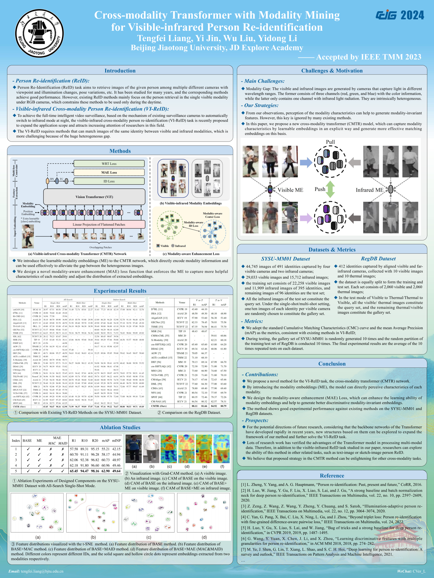 | P018 | Cross-Modality Transformer With Modality Mining for Visible-Infrared Person Re-Identification | 梁腾飞、金一、刘武、李浥东 | IEEE TMM | 查看 |