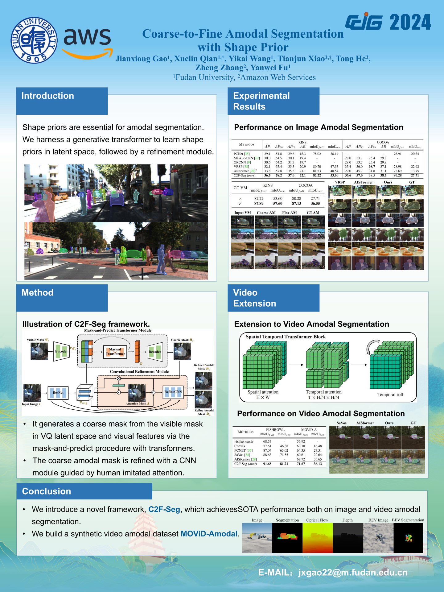 | P020 | Coarse-to-Fine Amodal Segmentation with Shape Prior | 高剑雄、钱学林、王艺楷、肖天骏、何通、张峥、付彦伟 | ICCV | 查看 |