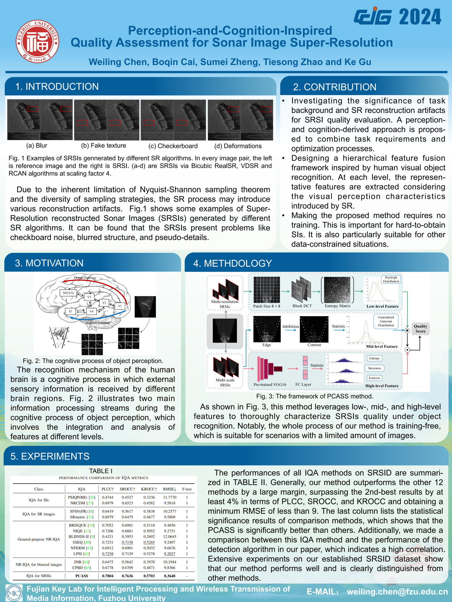 | P026 | Perception-and-Cognition-Inspired Quality Assessment for Sonar Image Super-Resolution | 陈炜玲、蔡柏亲、郑素梅、赵铁松、顾锞 | IEEE TMM | 查看 |
