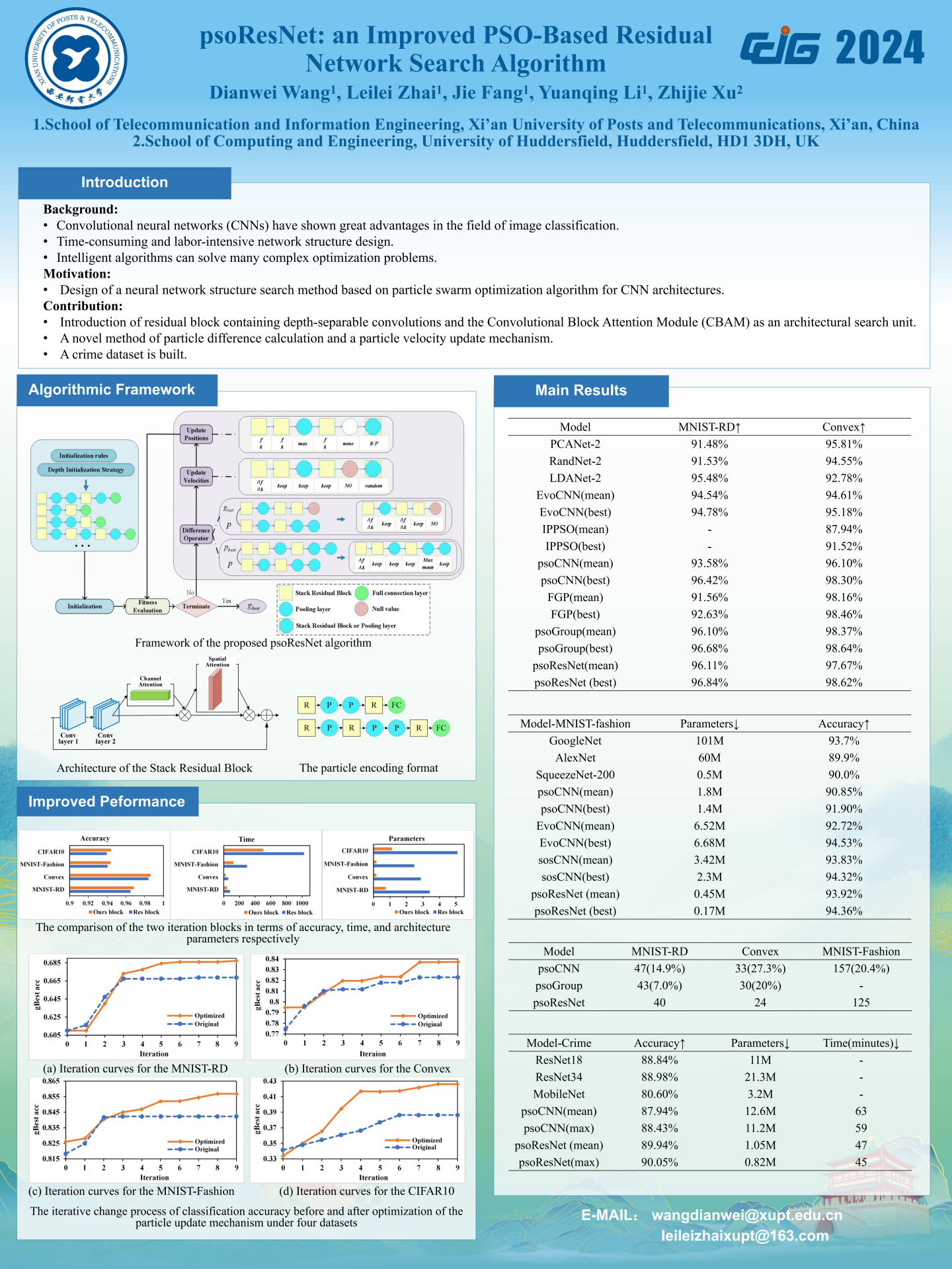 | P029 | psoResNet: an Improved PSO-Based Residual Network Search Algorithm | 王殿伟、翟蕾蕾、房杰、李苑青、许志杰 | Neural Networks | 查看 |