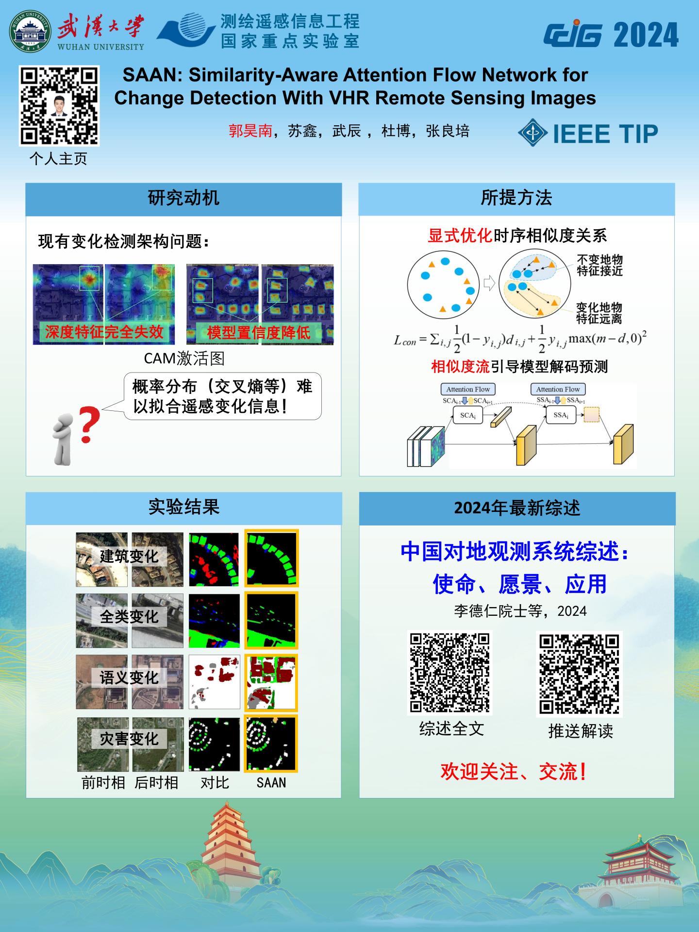 | P030 | SAAN: Similarity-Aware Attention Flow Network for Change Detection With VHR Remote Sensing Images | 郭昊南、苏鑫、武辰 、杜博、张良培 | IEEE TIP | 查看 |