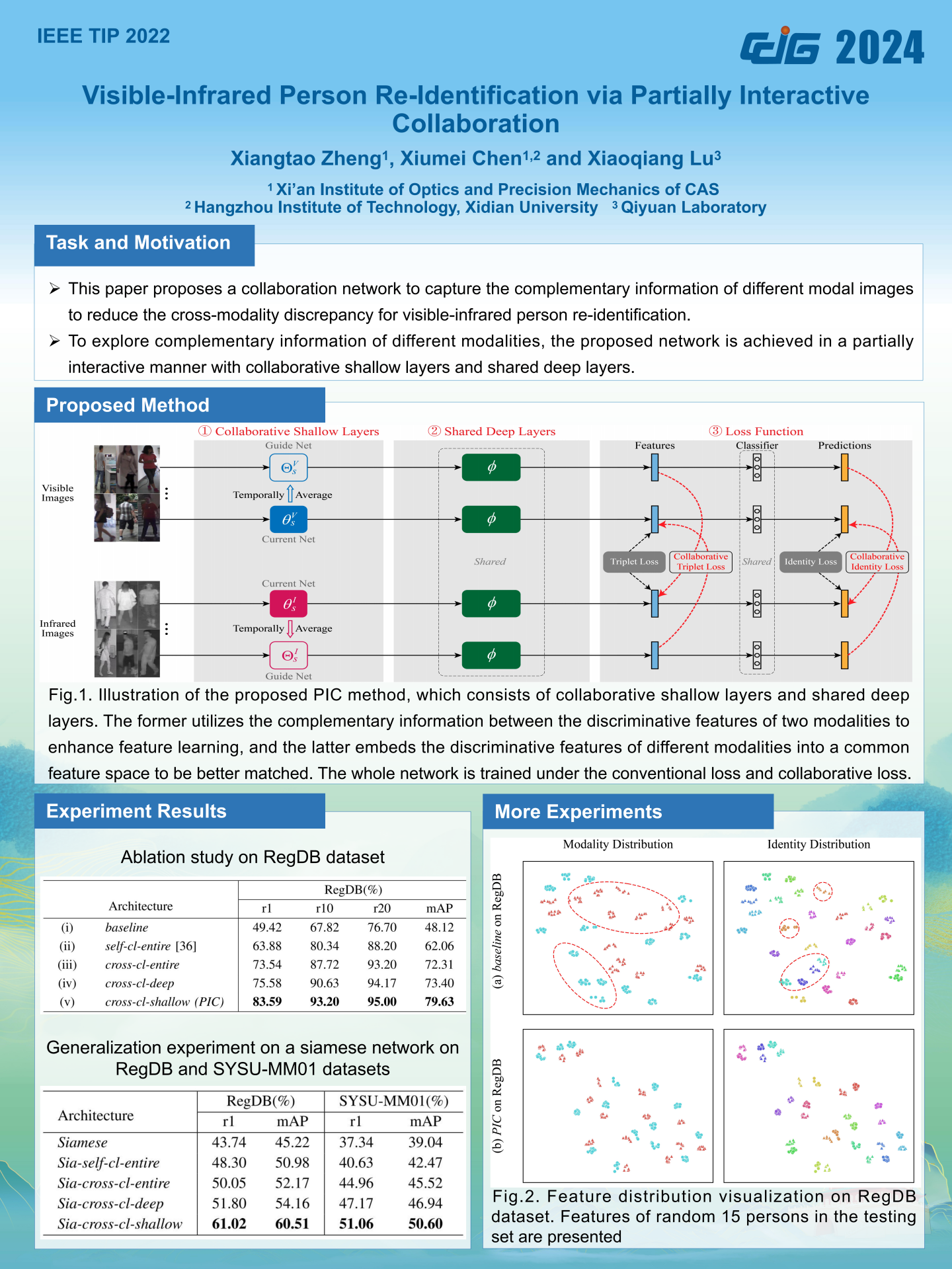| P031 | Visible-Infrared Person Re-Identification via Partially Interactive Collaboration | 郑向涛、陈秀妹、卢孝强 | IEEE TIP | 查看 |
