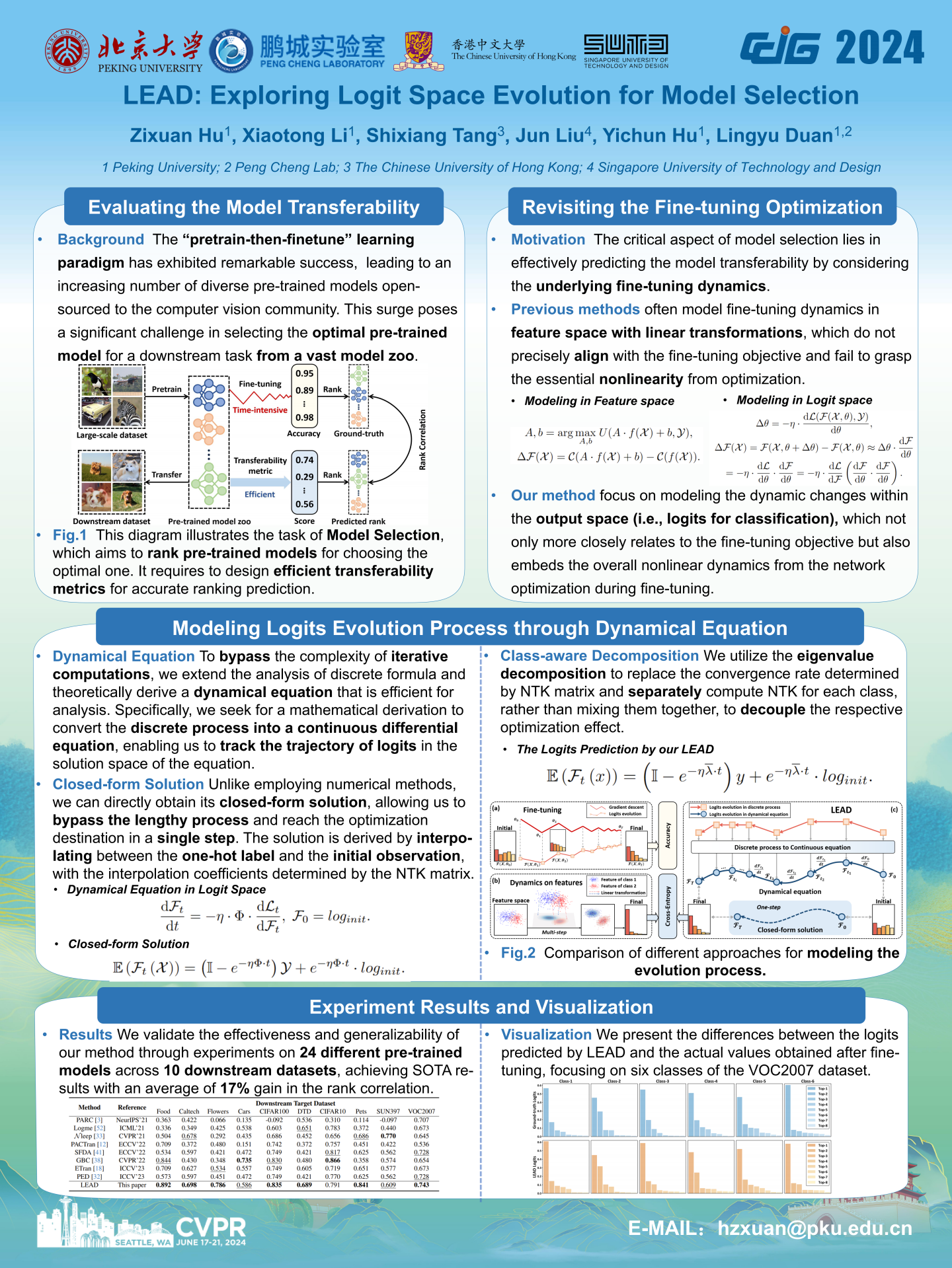 | P032 | LEAD: Exploring Logit Space Evolution for Model Selection | 胡子轩、李晓彤、唐诗翔、刘俊、胡一淳、段凌宇 | CVPR | 查看 |