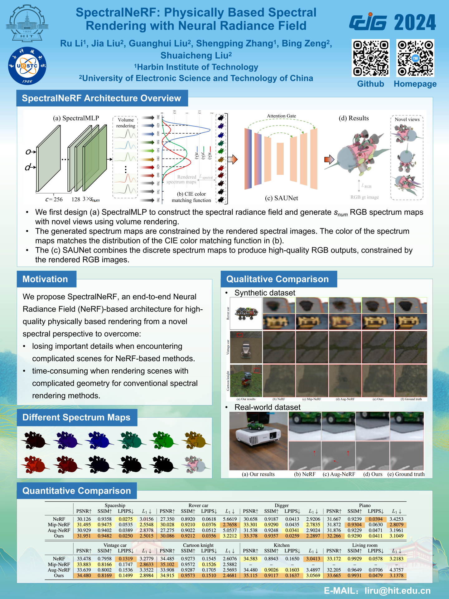 | P034 | SpectralNeRF: Physically Based Spectral Rendering with Neural Radiance Field | 李茹、刘嘉、刘光辉、张盛平、曾兵、刘帅成 | AAAI | 查看 |