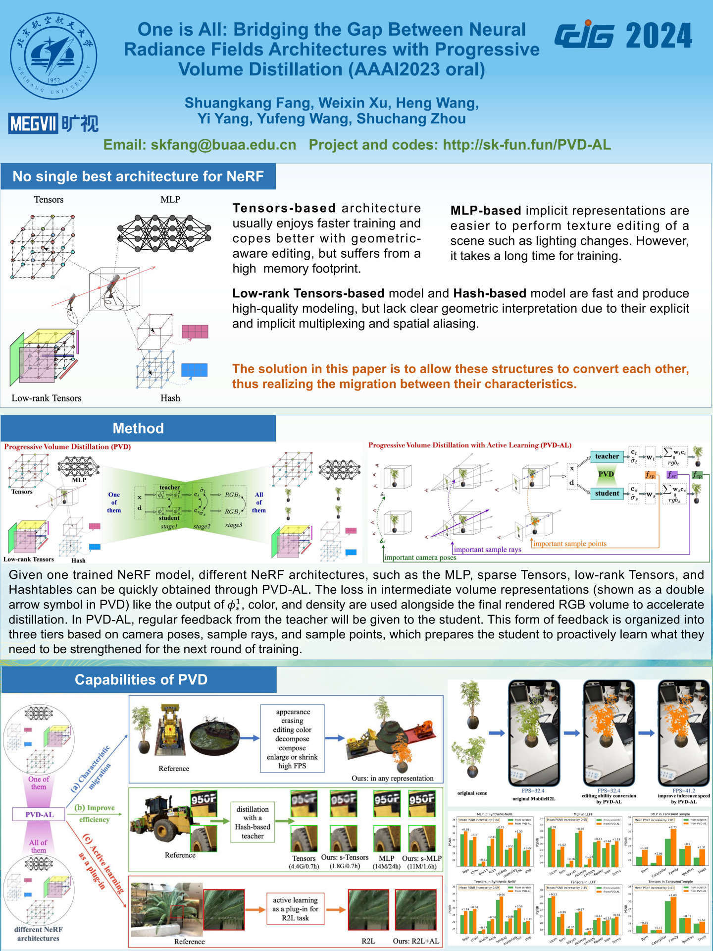 | P040 | One is All: Bridging the Gap Between Neural Radiance Fields Architectures with Progressive Volume Distillation | 方双康、许伟欣、王亨、杨弋、王玉峰、周舒畅 | AAAI | 查看 |