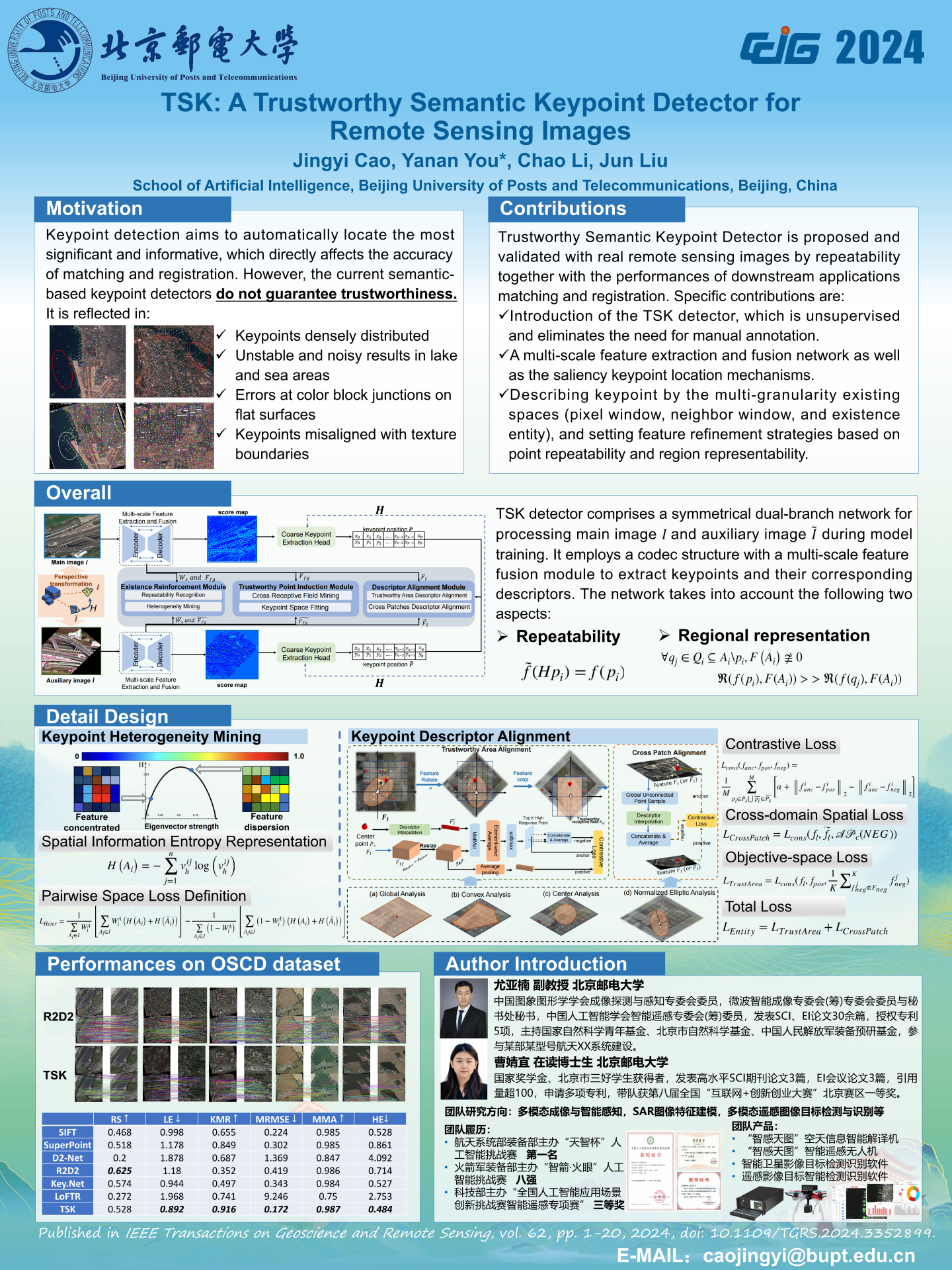 | P043 | TSK: A Trustworthy Semantic Keypoint Detector for Remote Sensing Images | 曹婧宜、尤亚楠、黎超、刘军 | IEEE TGRS | 查看 |