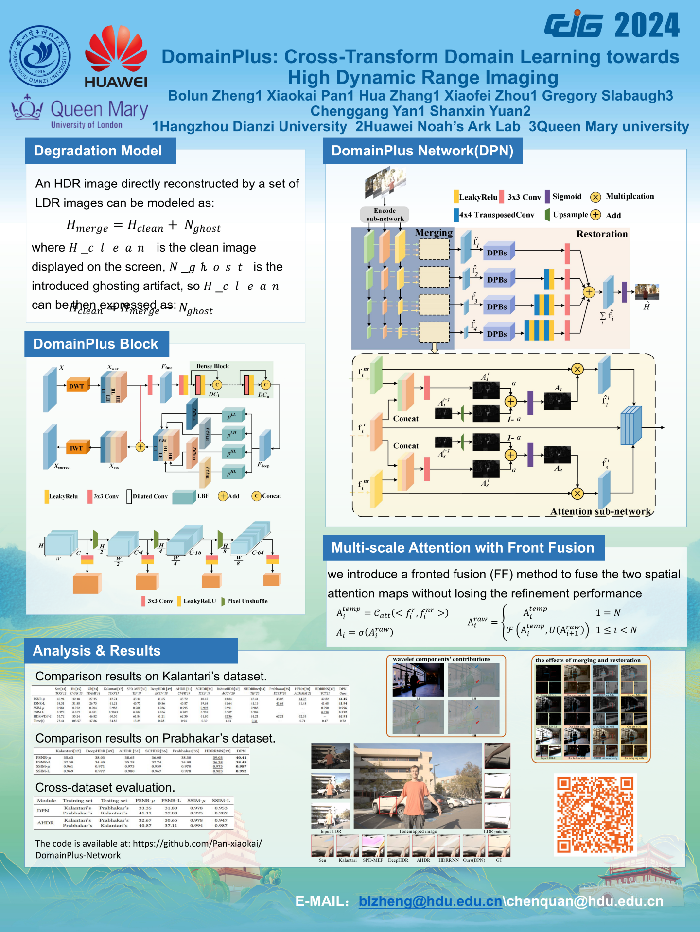 | P045 | DomainPlus: cross transform domain learning towards high dynamic range imaging | 郑博仑、潘潇恺、张桦、周晓飞、格雷戈里-斯拉博、颜成钢、袁善新 | ACMM | 查看 |