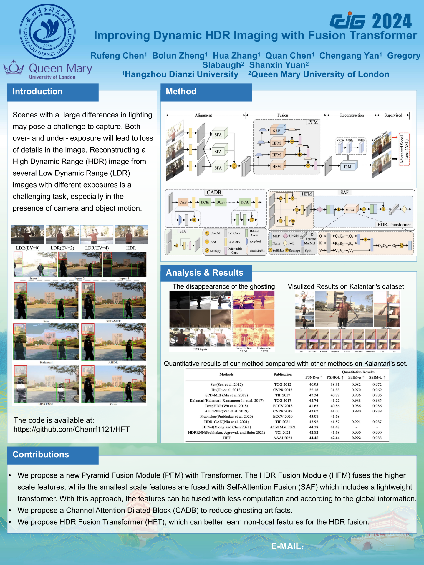 | P046 | Improving dynamic hdr imaging with fusion transformer | 陈如枫、郑博仑、张桦、陈泉、颜成钢、格雷戈里-斯拉博、袁善新 | AAAI | 查看 |