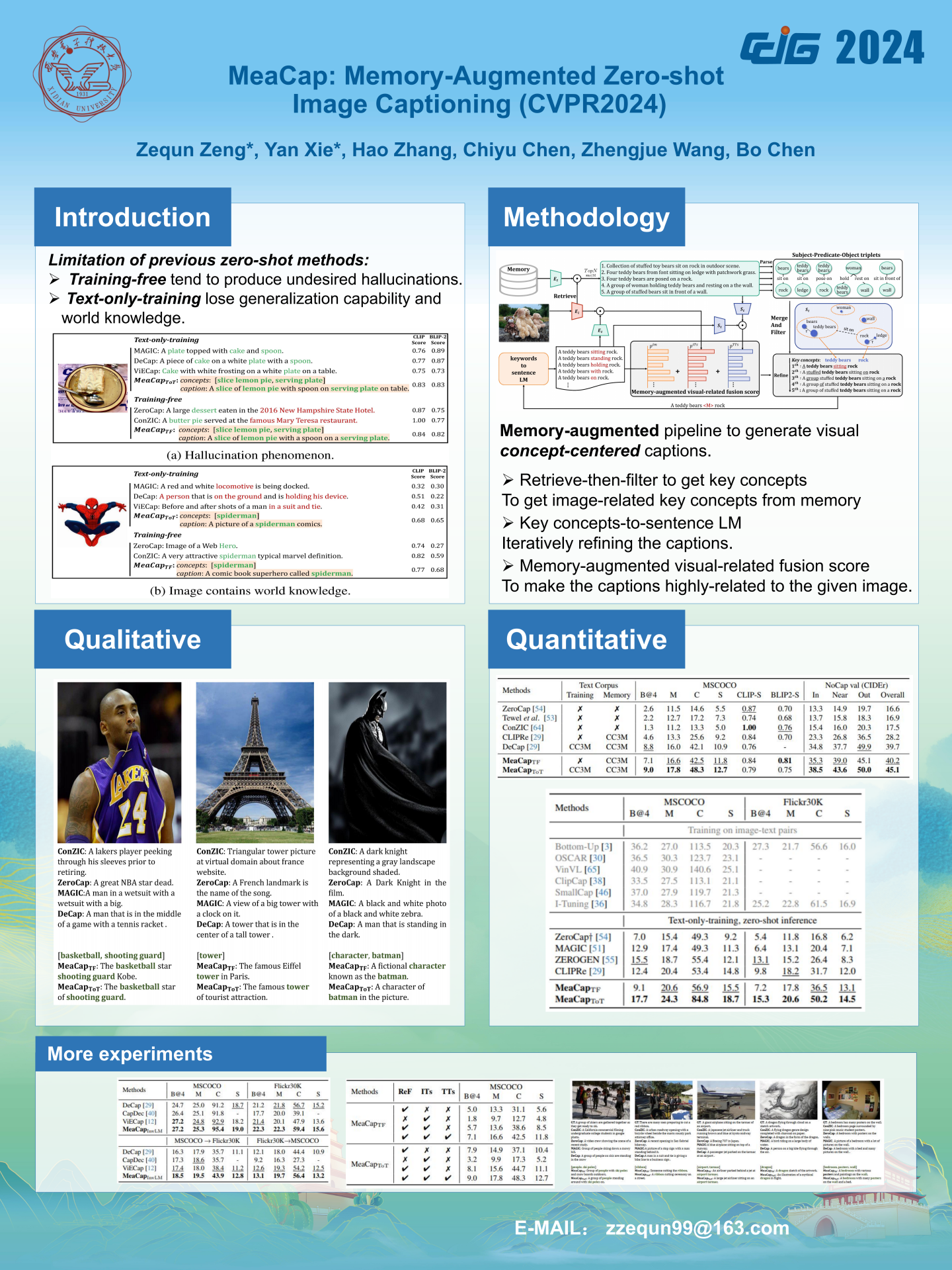 | P049 | MeaCap: Memory-Augmented Zero-shot Image Captioning | 曾泽群、谢岩、张昊、陈驰宇、王正珏、陈渤 | CVPR | 查看 |