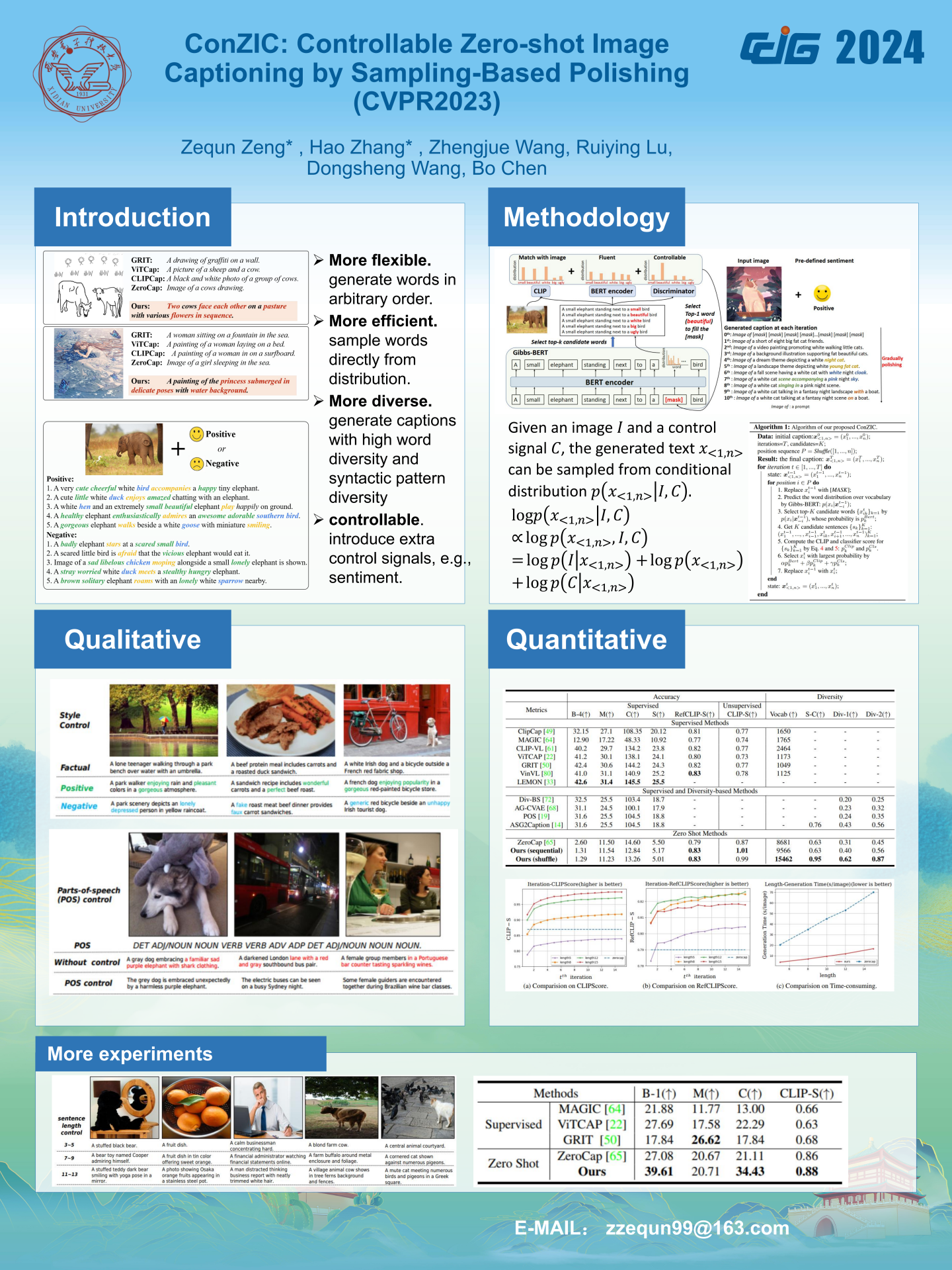 | P050 | ConZIC: Controllable Zero-shot Image Captioning by Sampling-Based Polishing | 曾泽群、张昊、王正珏、鲁瑞颖、王东升、陈渤 | CVPR | 查看 |