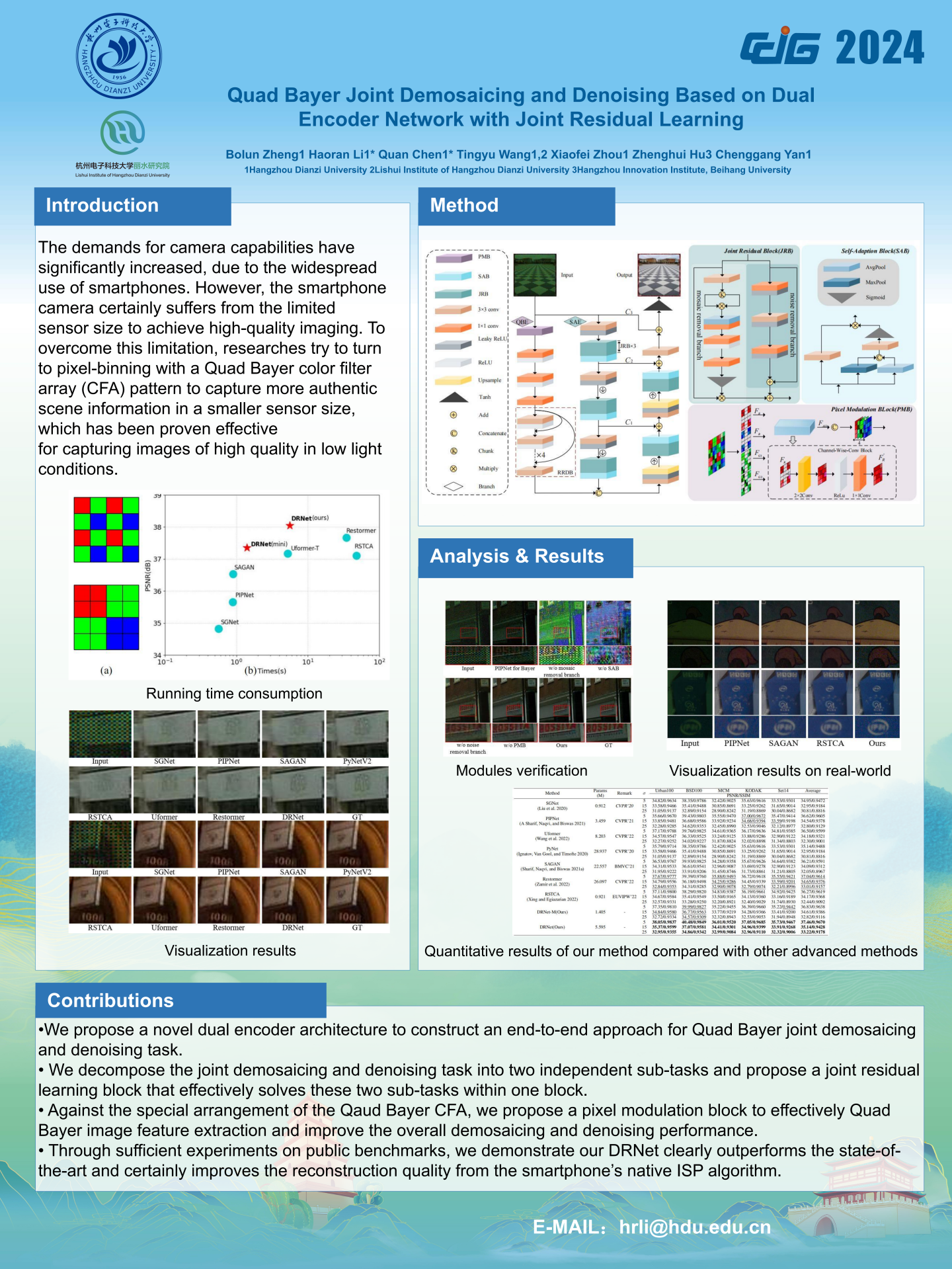 | P051 | Quad Bayer Joint Demosaicing and Denoising Based on Dual Encoder Network with Joint Residual Learning | 郑博仑、李浩然、陈泉、王廷宇、周晓飞、胡正辉、颜成钢 | AAAI | 查看 |