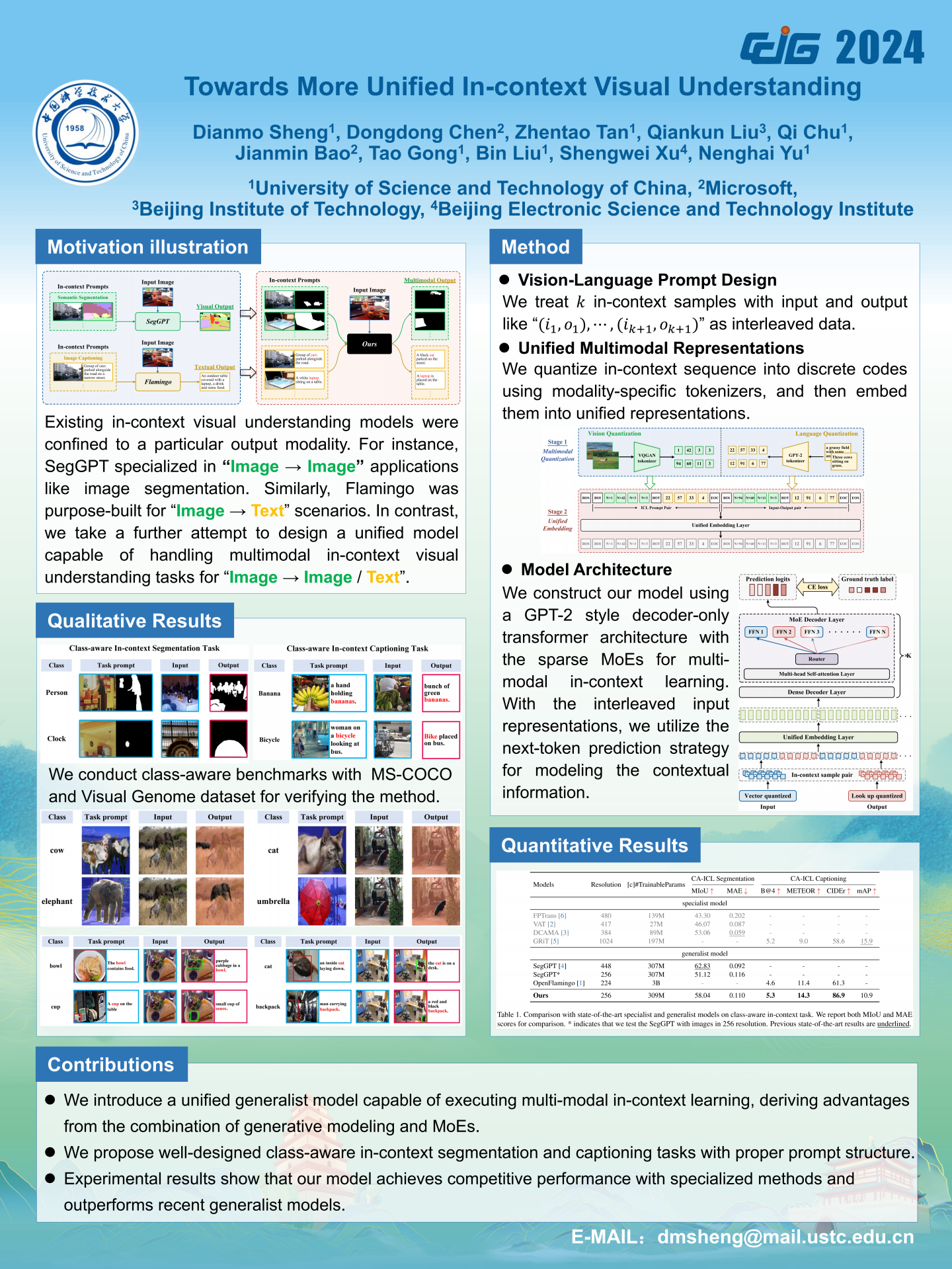 | P065 | Towards More Unified In-context Visual Understanding | 盛典墨、陈冬冬、谭振涛、刘乾坤、储琪、鲍建敏、龚涛、刘斌、许盛伟、俞能海 | CVPR | 查看 |