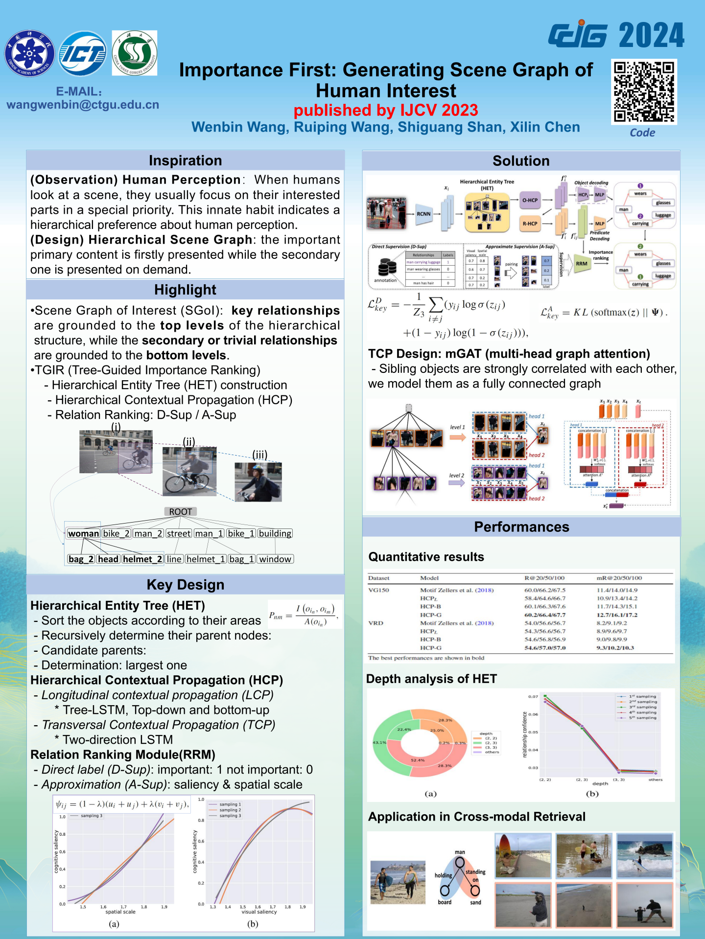 | P007 | Importance First: Generating Scene Graph of Human Interest | 王文彬、王瑞平、山世光、陈熙霖 | IJCV | 查看 |