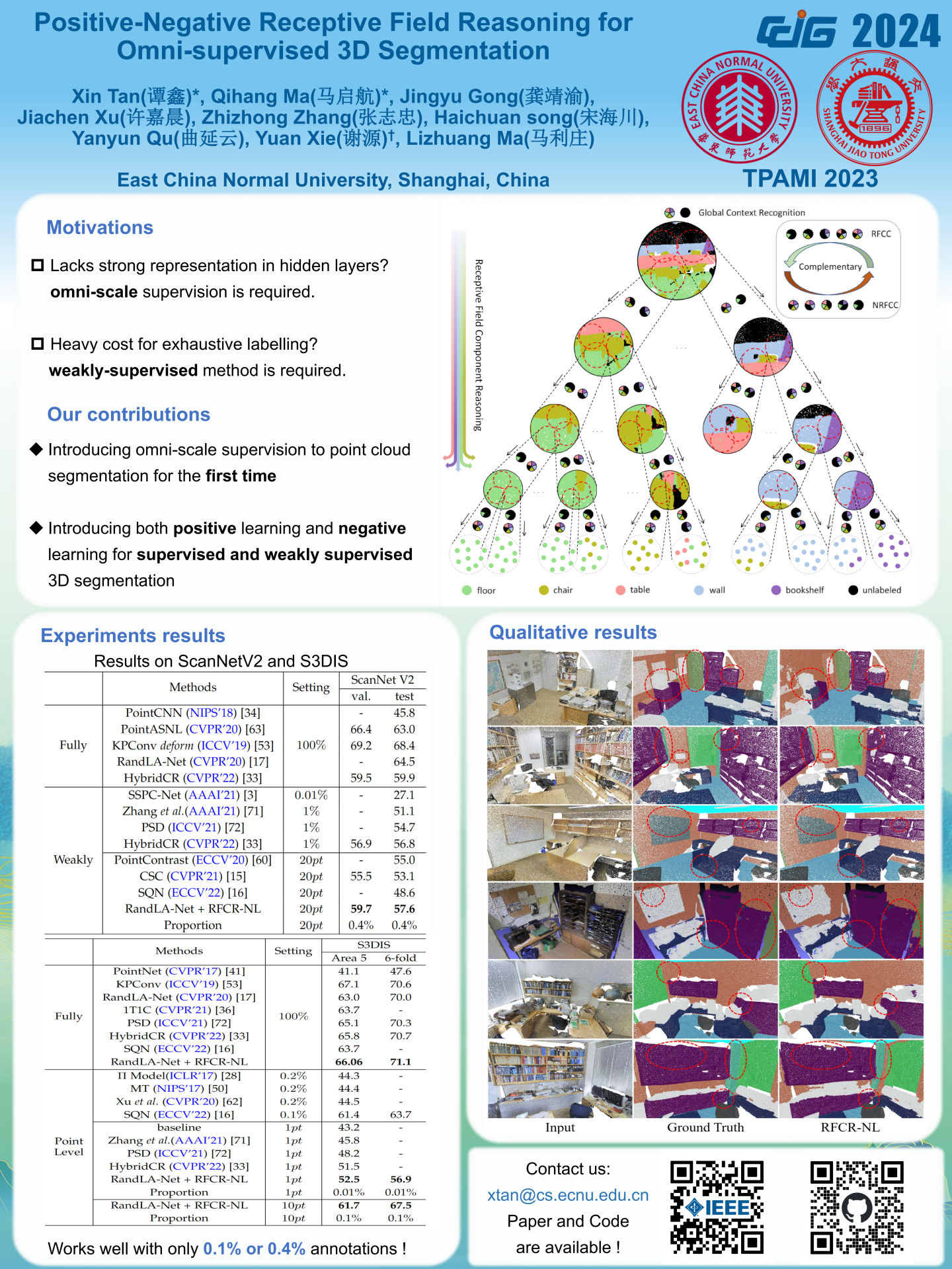 | P081 | Positive-Negative Receptive Field Reasoning for Omni-supervised 3D Segmentation | 谭鑫、马启航、龚靖渝、许嘉晨、张志忠、宋海川、曲延云、谢源、马利庄 | IEEE TPAMI | 查看 |