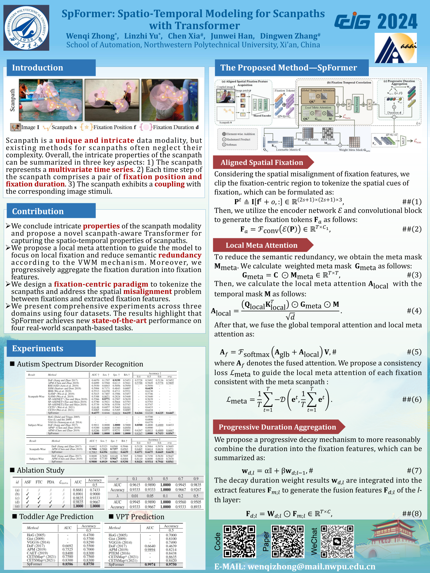 | P088 | SpFormer: Spatio-Temporal Modeling for Scanpaths with Transformer | 钟文琦、余霖智、夏辰、韩军伟、张鼎文 | AAAI | 查看 |