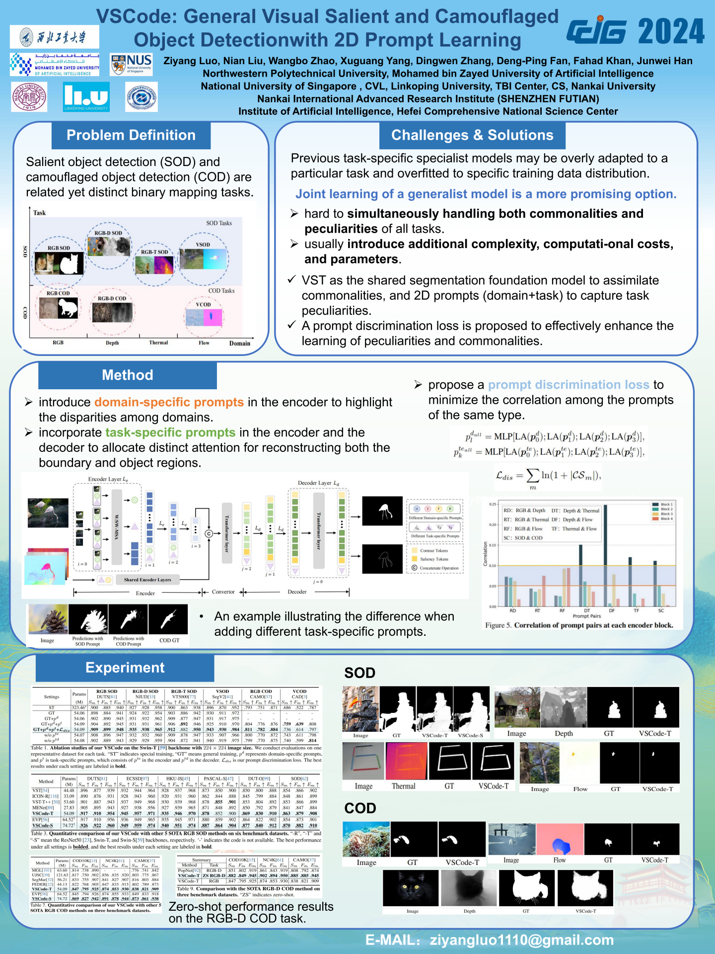 | P090 | VSCode: General Visual Salient and Camouflaged Object Detectionwith 2D Prompt Learning | 罗子扬、刘念、赵望博、杨旭广、张鼎文、范登平、法赫德·汗、韩军伟 | CVPR | 查看 |
