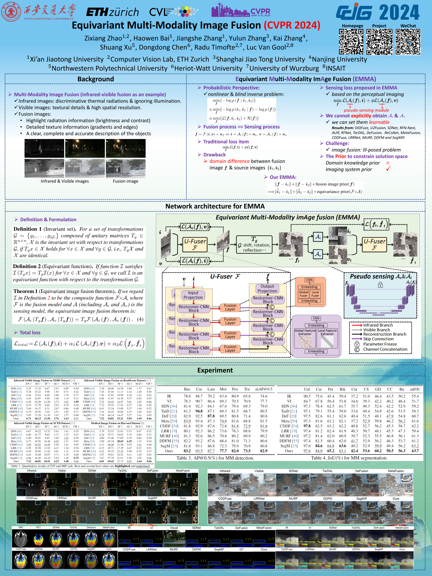 | P092 | Equivariant Multi-Modality Image Fusion | 赵子祥、白浩闻、张讲社、张宇伦、张凯、徐爽、陈东东、Radu Timofte、Luc Van Gool | CVPR | 查看 |