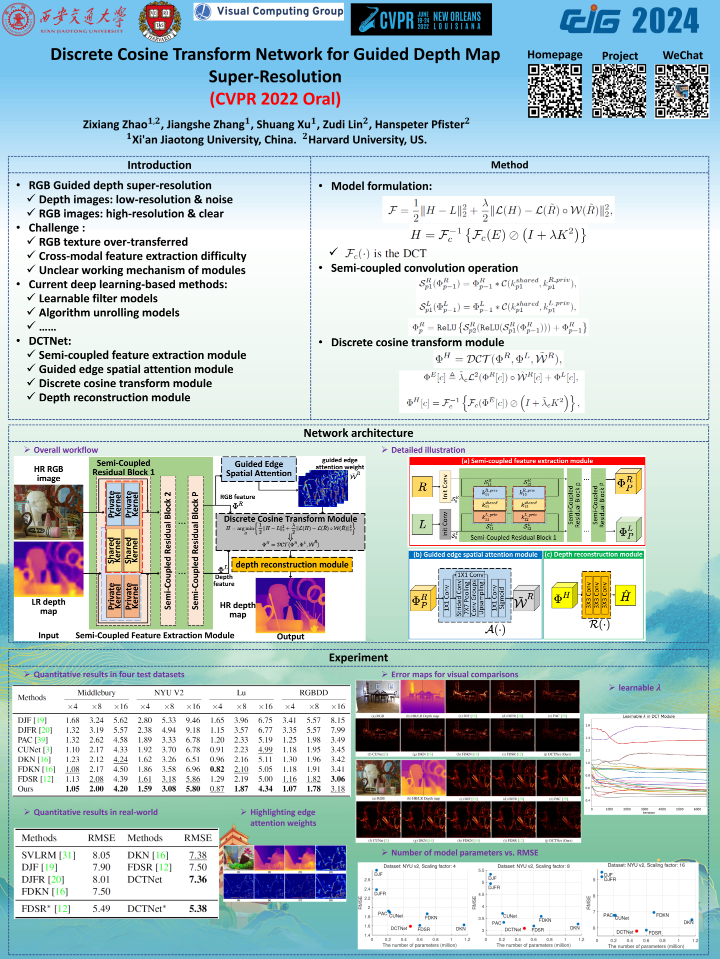 | P094 | Discrete Cosine Transform Network for Guided Depth Map Super-Resolution | 赵子祥、张讲社、徐爽、林祖迪、Hanspeter Pfister | CVPR | 查看 |